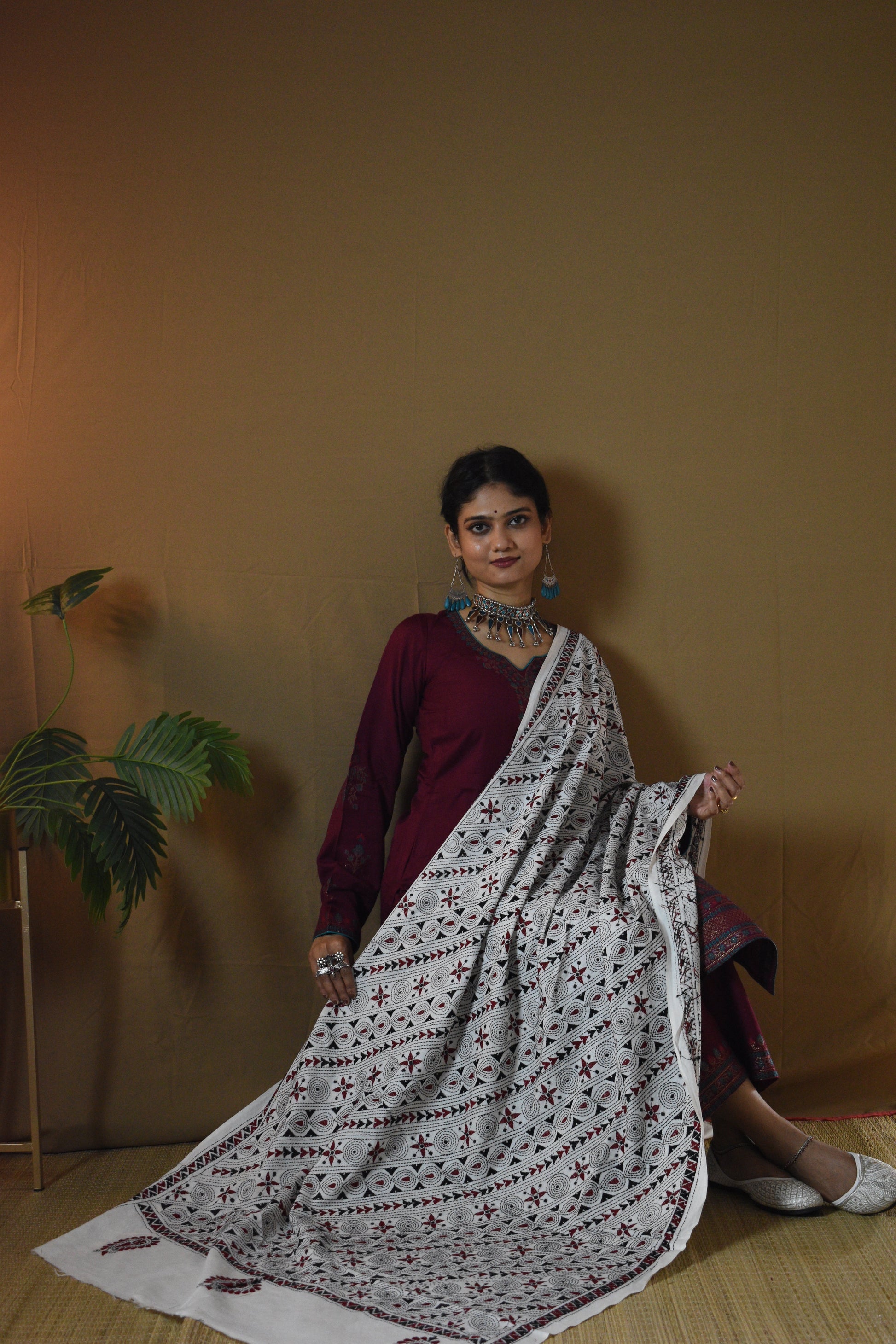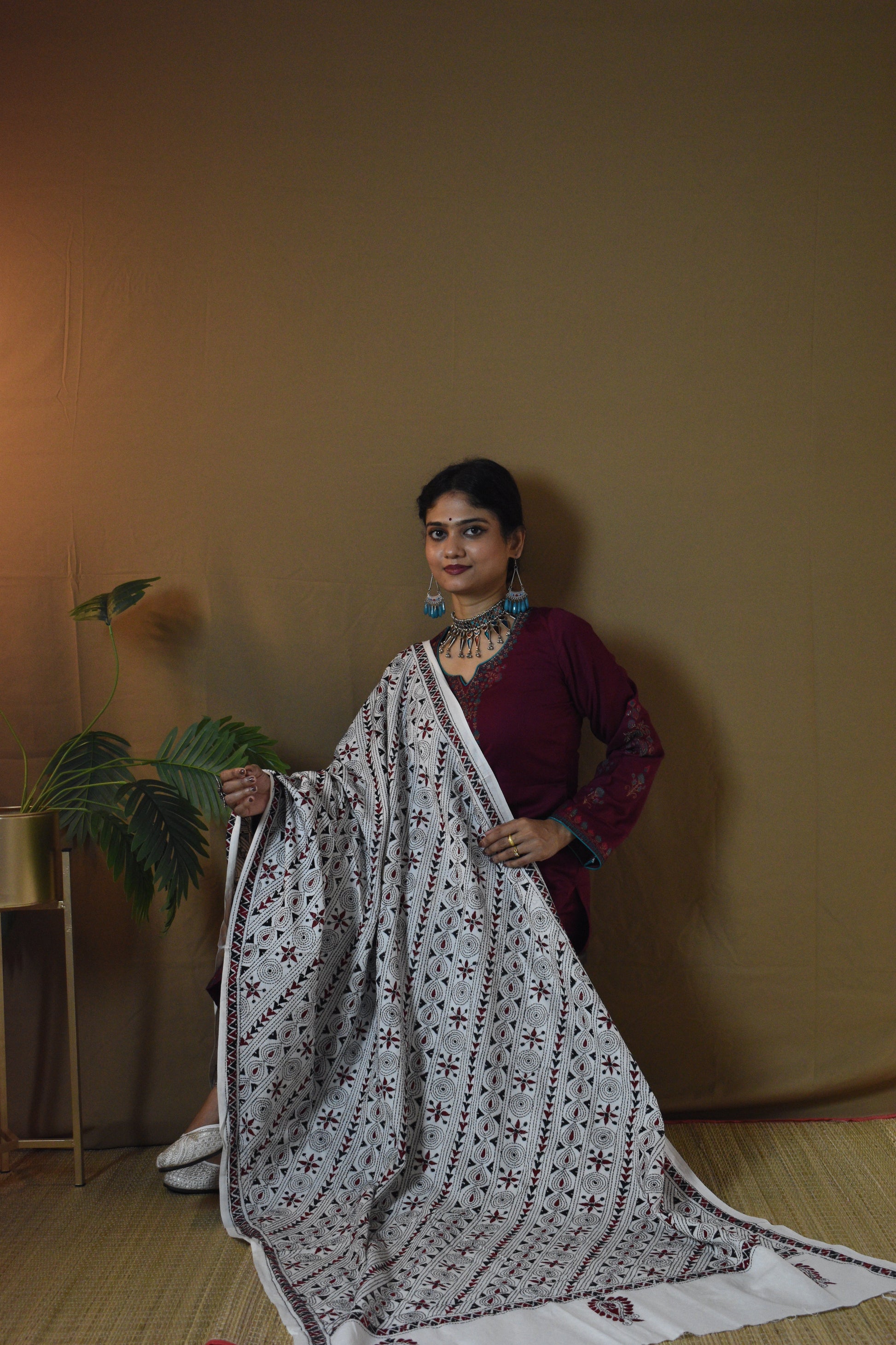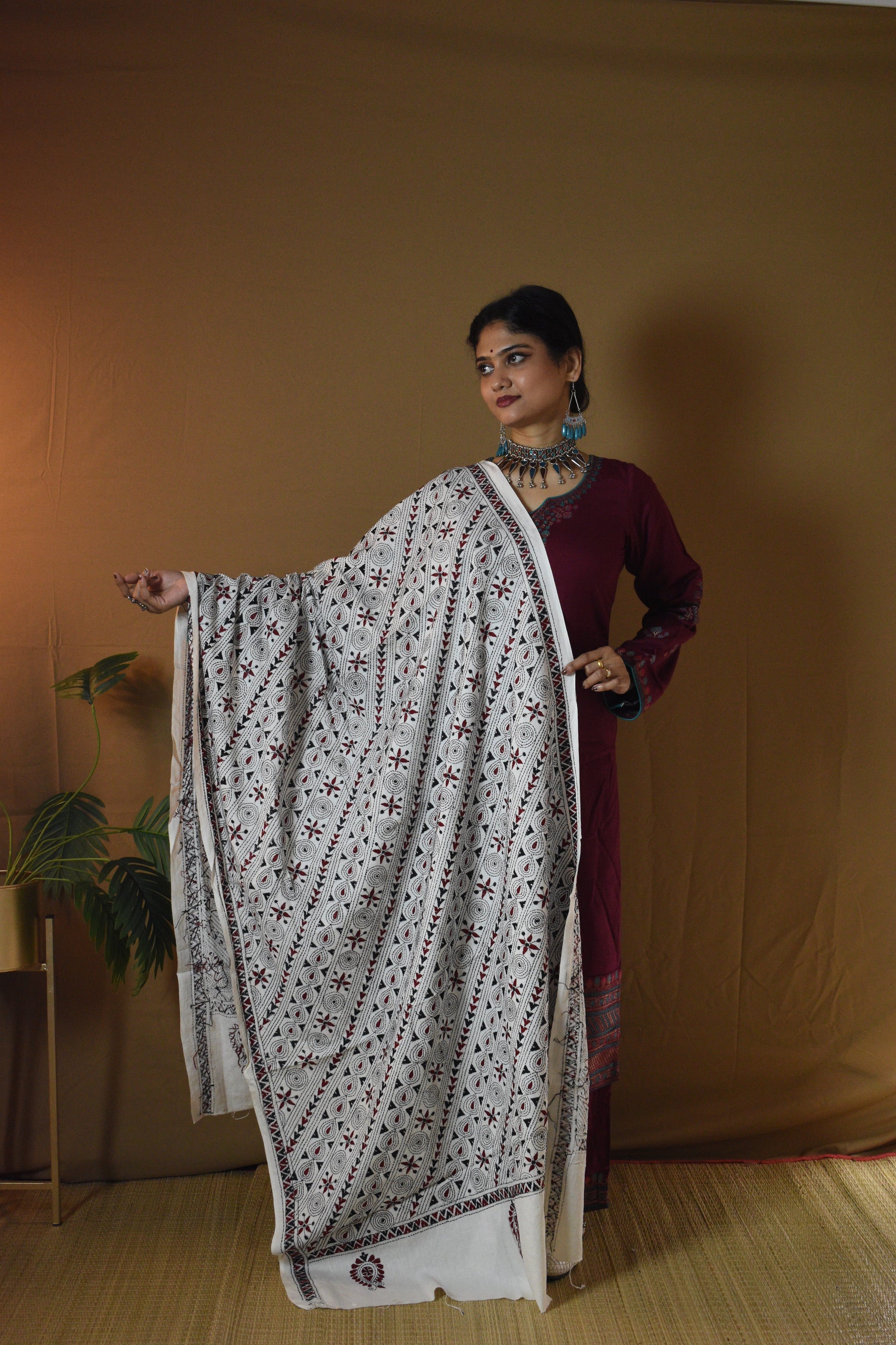 Experience the timeless charm of Bengal’s Kantha artistry with our Off White Geometrical Pure Cotton Hand Embroidered Kantha Dupatta. Hand-embroidered by skilled women artisans, each dupatta is a celebration of patience and heritage, with running stitches that bring alive traditional motifs. The Pure Cotton fabric feels soft, airy, and light on the skin. The Off White base, accented with multi-color threadwork, gives a graceful charm that blends effortlessly with traditional as well as contemporary looks. A Dupatta not just to wear, but to treasure, as art, as memory, as legacy.