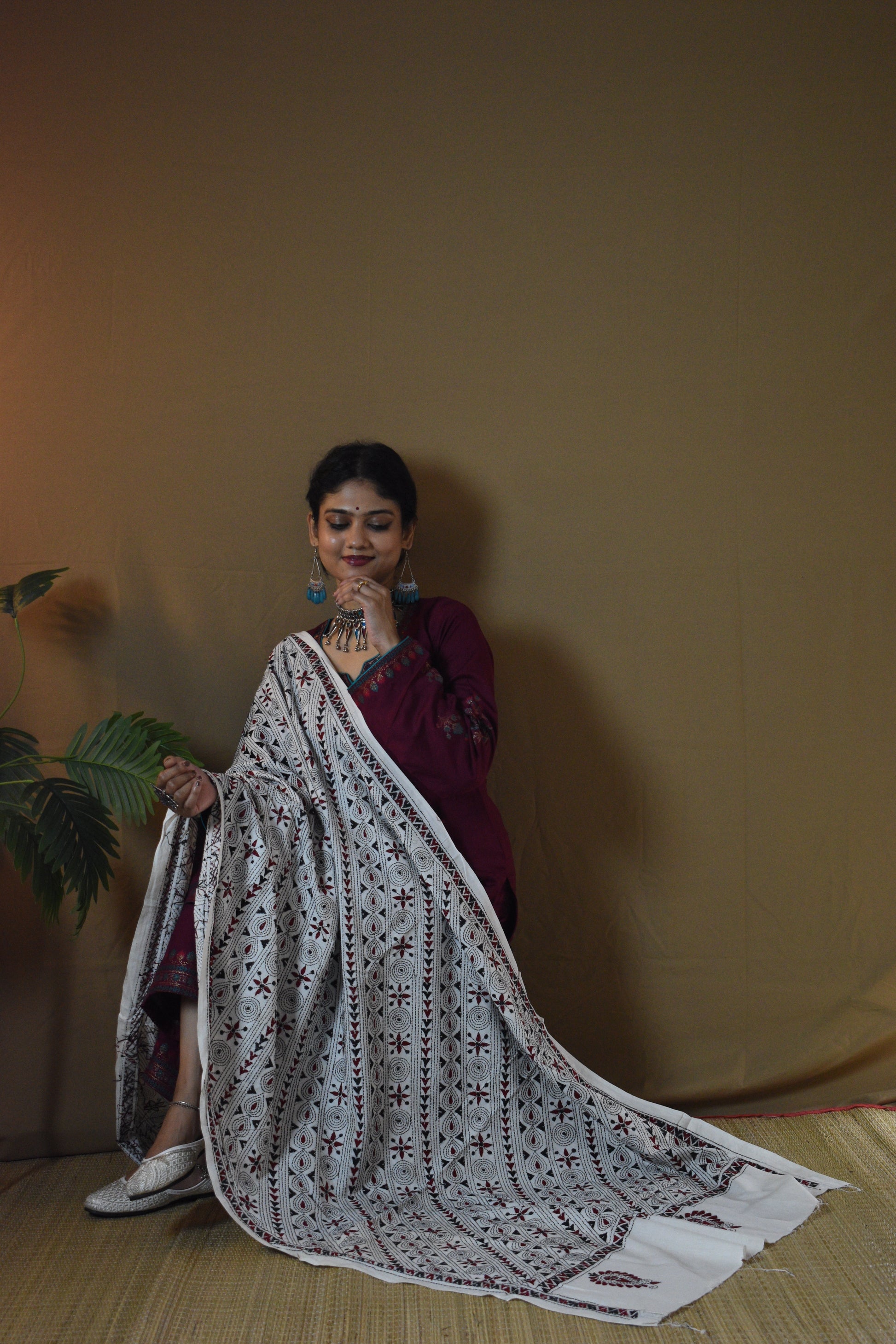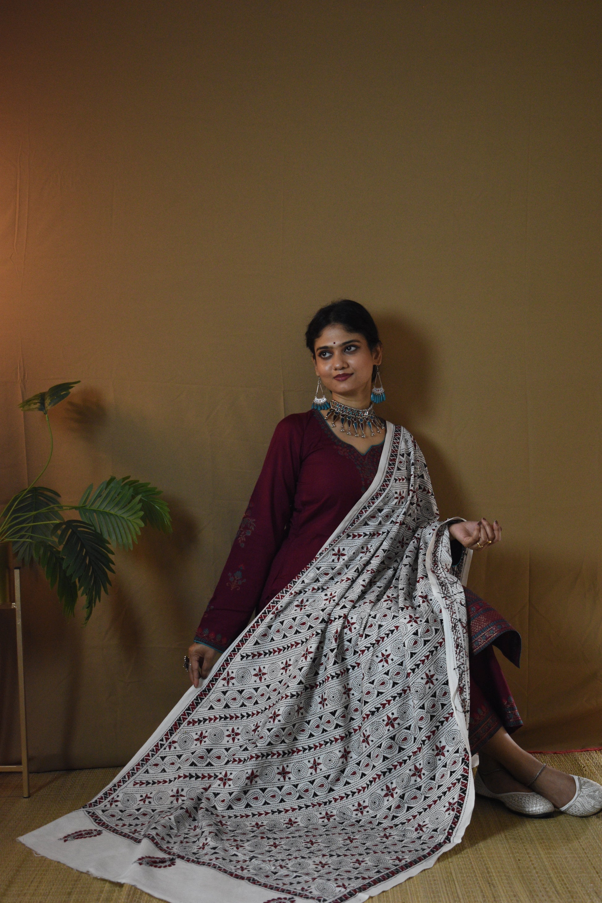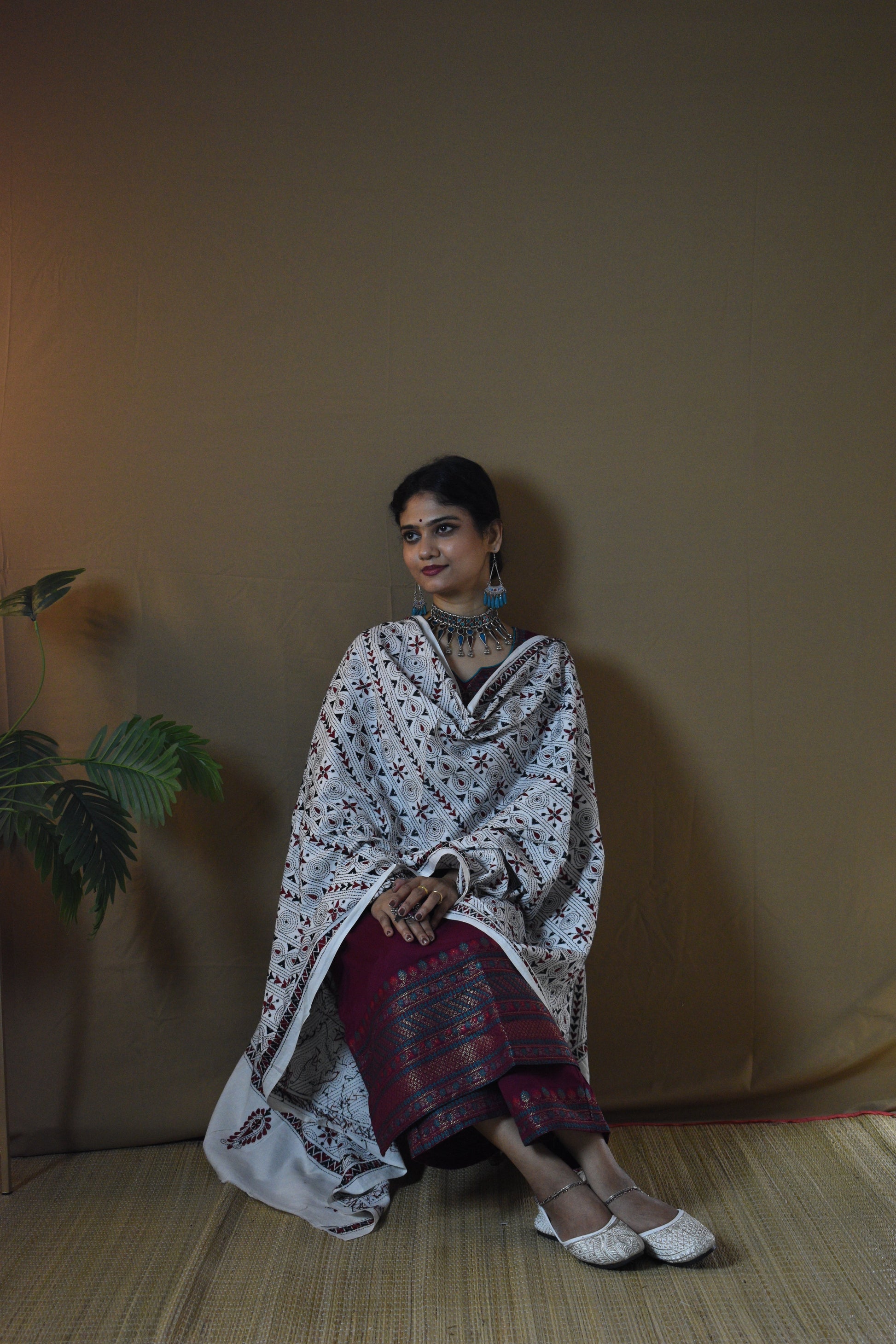 Experience the timeless charm of Bengal’s Kantha artistry with our Off White Geometrical Pure Cotton Hand Embroidered Kantha Dupatta. Hand-embroidered by skilled women artisans, each dupatta is a celebration of patience and heritage, with running stitches that bring alive traditional motifs. The Pure Cotton fabric feels soft, airy, and light on the skin. The Off White base, accented with multi-color threadwork, gives a graceful charm that blends effortlessly with traditional as well as contemporary looks. A Dupatta not just to wear, but to treasure, as art, as memory, as legacy.