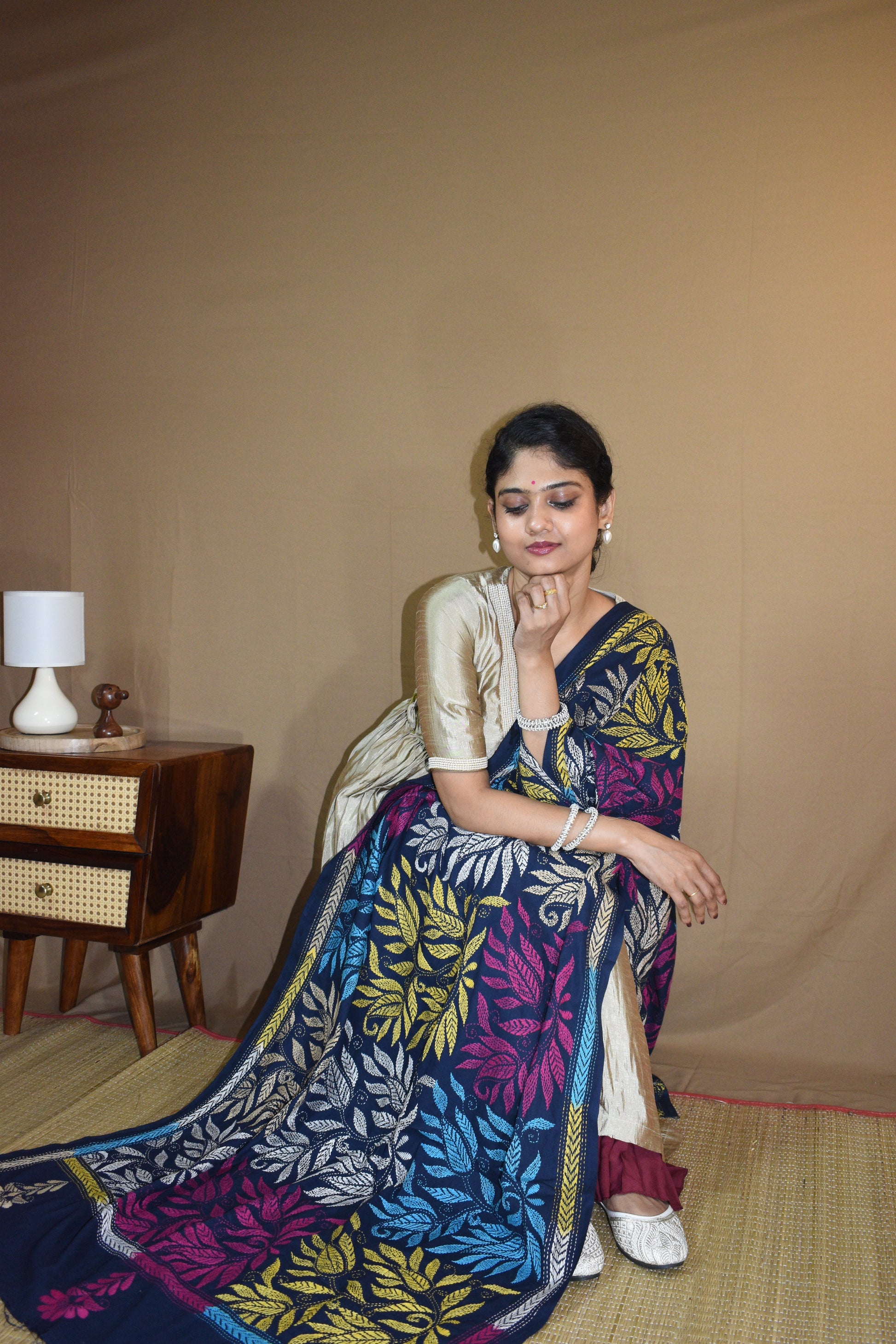 - Pure artisan hand-embroidery (Hand Kantha Work)